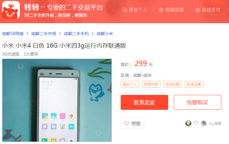 这一部小米4是成都市网民从走走内以299元的价钱下手的,他感觉它是近乎完美的一部备用机,从往日的1999元大跌到299元,性价比高真是绝世!