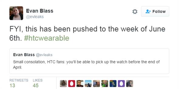 尽管HTC知名品牌在国际性认知度慢慢下降,殊不知,曝料大咖Evan Blass(@evleaks)依然对HTC享有很大的关注。依据他在本人Twitter上出示的全新叫法,HTC还有机会在六月发布奇下第一款聪慧腕表。