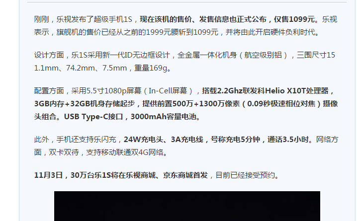其实这个手机在品牌上并没有(华为、iPhone 之类大品牌有知名度)但总体上也算为手机行业做出过贡献的,它就是乐视超级手机1S,当时各大网站发布价格虽然仅仅是1099元,而过了两年多价格是599元,这说明什么?“性能和外观没有水分”而外观上也是第一次采用“ID无边框设计”全金属机身设计“航空级别铝”手感很棒,没什么割手的感觉;而配置上采用屏幕是“5.5寸1080p”,处理器是联发科X10T,运存3GB,续航方面总体适应一天一充因为“电池是3000mAh”不知道有谁在使用?