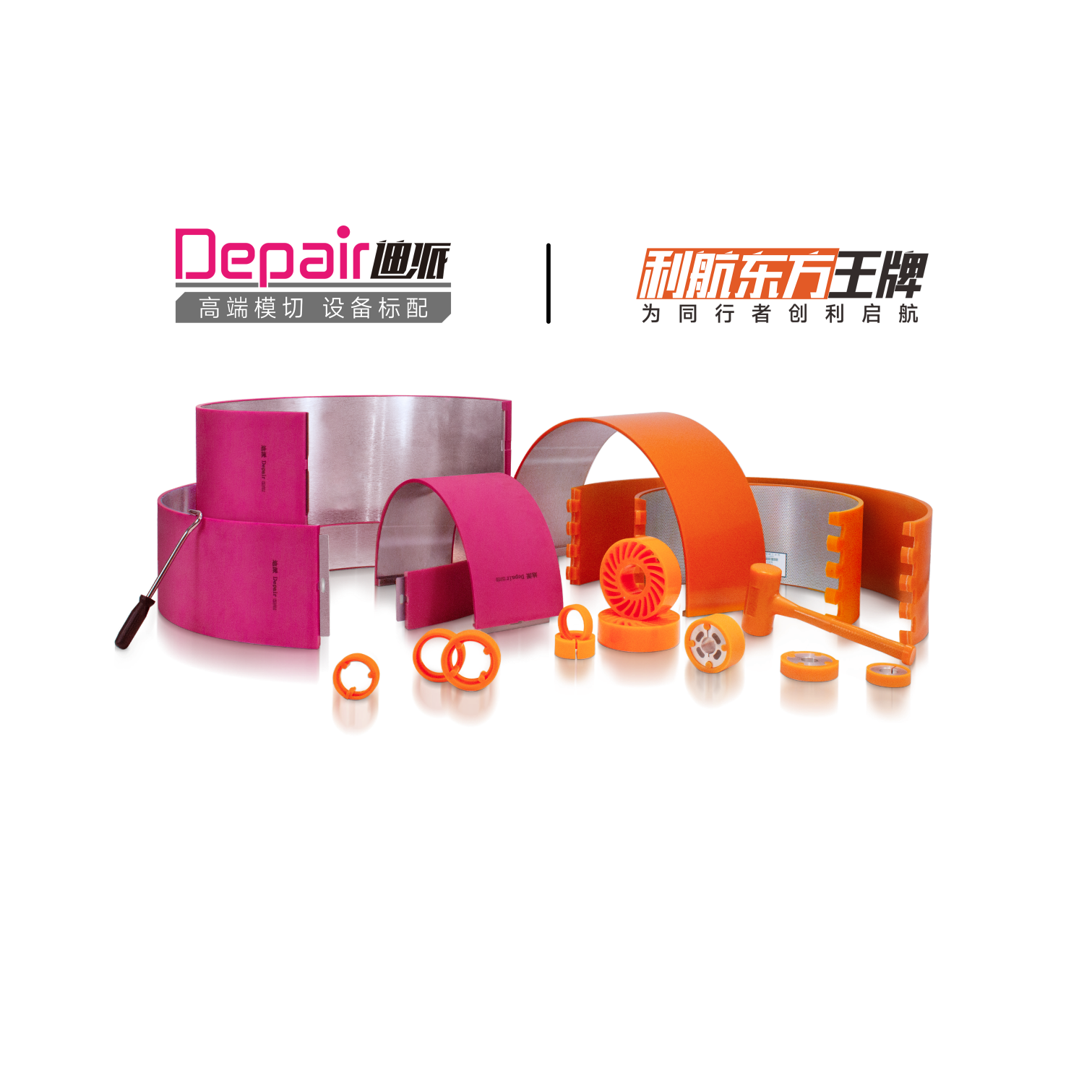 作为利航集团旗下两大核心品牌,“利航东方王牌” 与 “Depair迪派” 各有鲜明价值主张,为包装行业提供专业模切解决方案。其中,“利航东方王牌” 专注模切胶垫、送纸轮、轻压力轮全系列产品研发生产十余年,其模切胶垫一毫米厚度可实现80万次以上模切,最薄可用至2毫米,送纸轮跳动精度生产可控制在5个丝以内,轻压力轮更具备180度耐高温特性,凭借稳定可靠的性能成为众多企业的信赖之选;“Depair迪派” 聚焦高速模切胶垫领域,以 “提高模切质量、降低模切成本” 为使命,产品具有成型轻松、清废干净的核心优势,已通过200余家纸箱设备厂、3000余家纸包装企业的品质认证,成为高速模切场景的优选品牌。