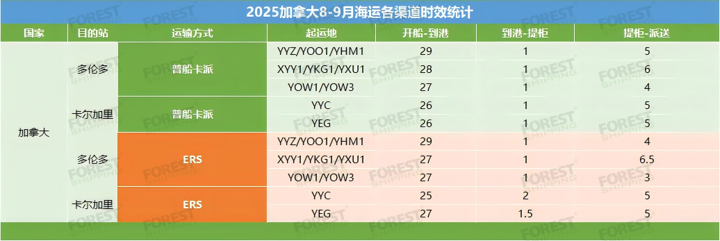 大森林普船卡派,优选OA&ZIM船司,覆盖卡尔加里、多伦多等主要核心港口,国内直航到达加拿大港口后再由大森林加拿大自营仓库安排卡车派送到各FBA仓库,开船到入仓参考平均时效30-40天。