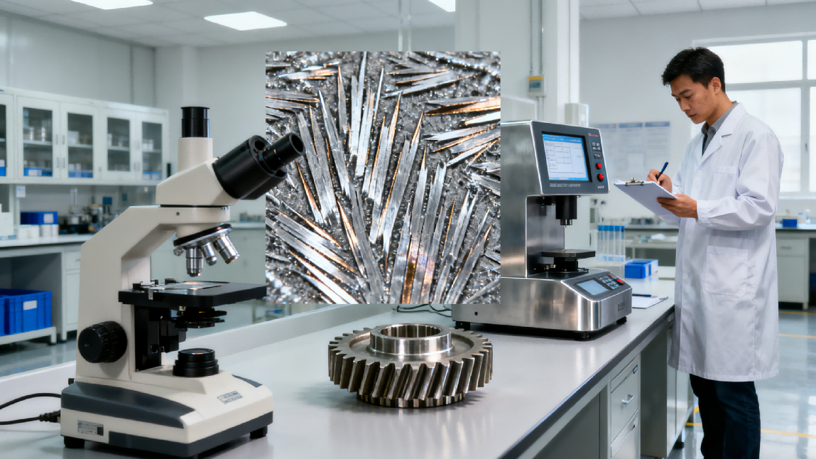 检测内容:渗碳层组织(无网状碳化物、马氏体级别≤3级)、心部组织(铁素体含量≤5%)、渗碳层深度(符合设计要求±0.1mm);