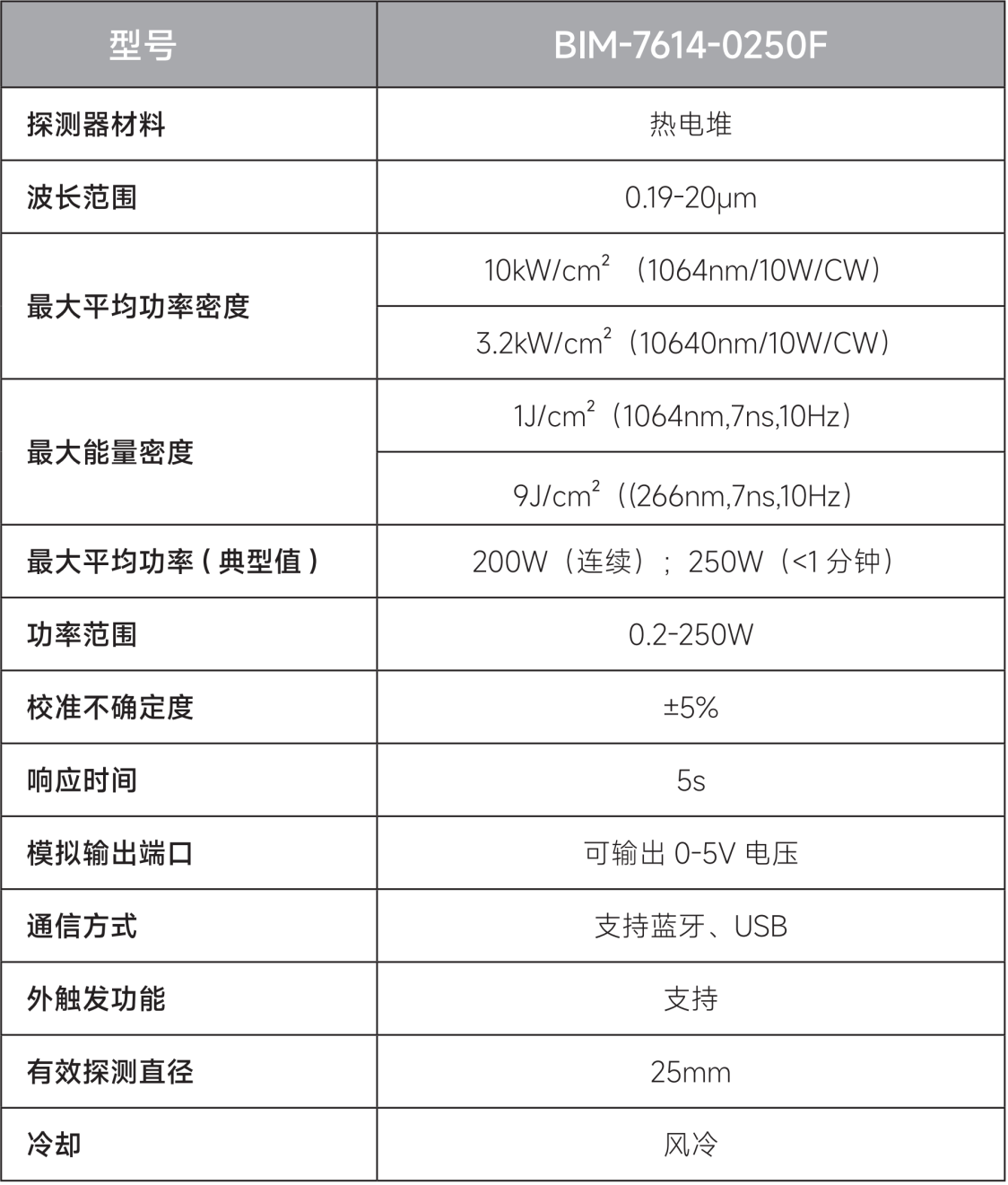 BrolightBIM-761X无线热电堆激光功率计可提供250W以内的绝对功率测量,测量数据可以通过USB/蓝牙传输到电脑或移动设备,并通过专用的客户端软件实时显示。每个探测器经过校准,通过内部集成的EEPROM存储校准数据,出厂时附带测试报告。