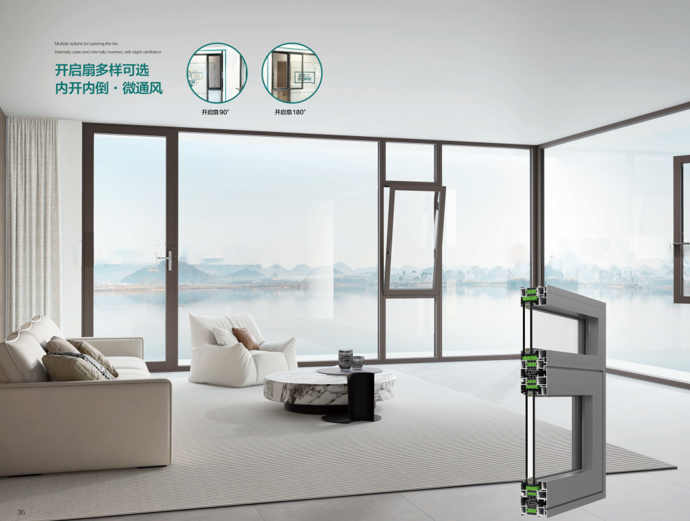 刚需首选:85系列平开系统:6063-T5原生铝+星耀五洲EPDM胶条+信义5+20A+5中空玻璃(填充吸音棉),卫仕双组份注胶工艺加持,降噪效果稳定,内开内倒、微通风等多种开启方式,适配刚需房、改善房日常使用,性价比拉满。