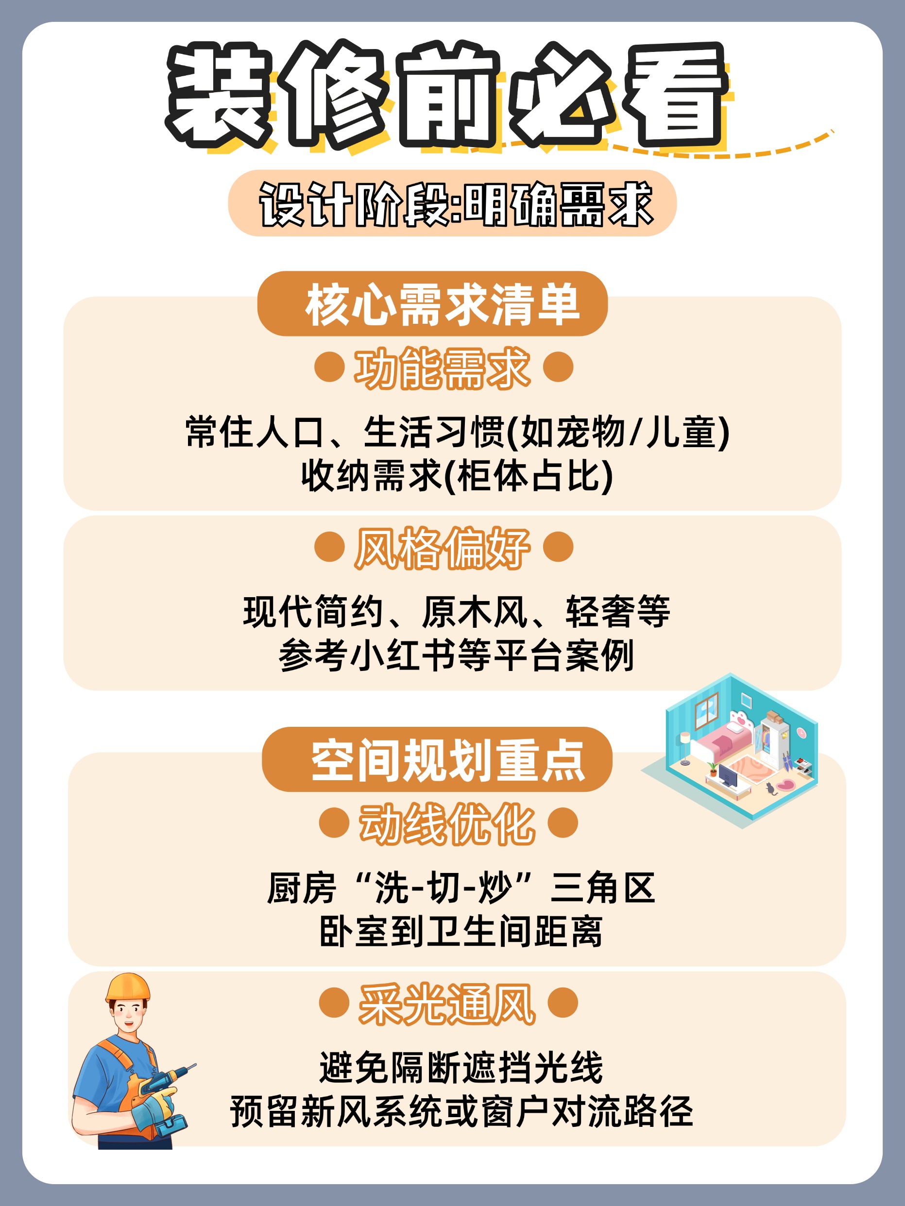 在动工前,充分的规划是成功的基石。首先,如何选择装修公司是关键。建议您对比至少3家公司,查看其资质、过往案例和业主评价。以我们轩怡家装的经验来看,亲自与设计师沟通,判断其能否精准理解您的需求,是筛选的重要一环。其次,制定详细的装修预算是控制成本的核心。除了基础施工费,还要预留15%-20%的备用金,以应对突发状况。