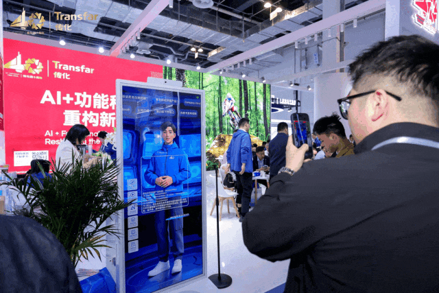 性能感知交互实现边界突破:依托 AI 工程师系统,以智能机器人为载体,可完成面料一秒扫描同步解析,快速识别面料特性及适配场景;以往抽象的高性能指标升级后也可通过可视化动态演示呈现,让原本难以展示的产品高性能变得可感知、可验证,实现从“听介绍”到“看实验”,从“查资料”到“玩互动”,全球客户观展体验的立体化跃迁。